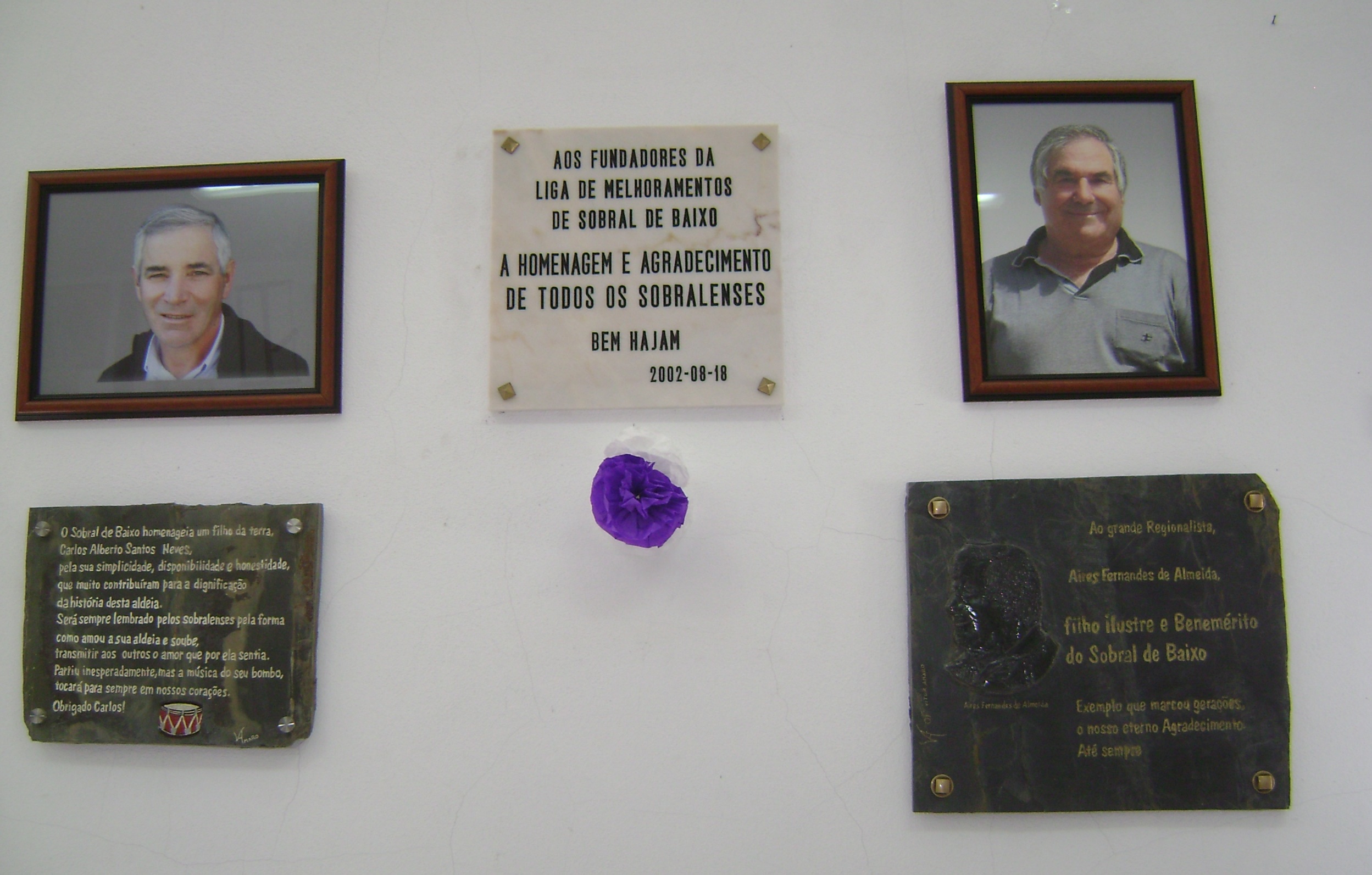 A Liga de Melhoramentos de Sobral de Baixo prestou homenagem póstuma a dois de seus adorados e dedicados filhos, AIRES FERNANDES DE ALMEIDA E CARLOS ALBERTO SANTOS NEVES, pela ajuda e bom nome que sempre deram a sua terra.
