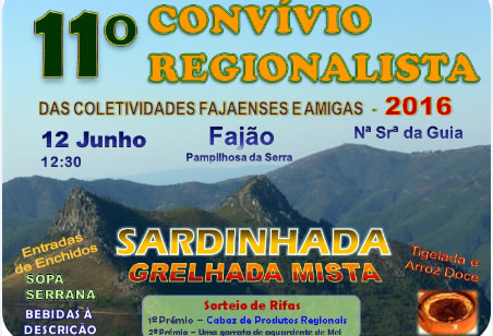 Tendo em conta o êxito dos anos anteriores e porque é já tradição na região, é pelo 11º ano consecutivo que as coletividades regionalistas da freguesia de Fajão–Vidual, e a União e Progresso de Vale Derradeiro (Cabril), vão realizar um grandioso Encontro Convívio Regionalista.